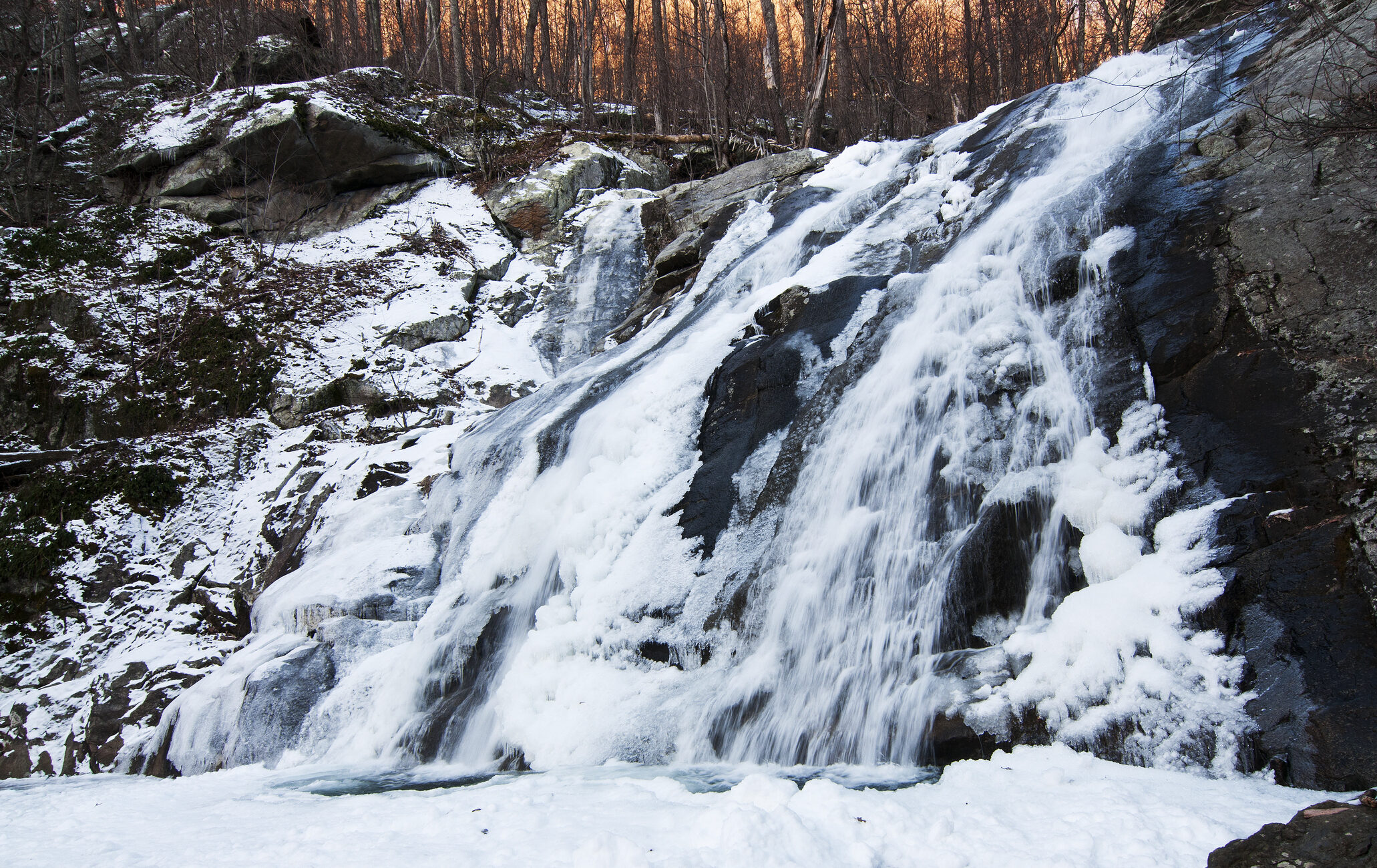 Situated in the hills of Virginia just 75 miles from Washington D.C., Shenandoah is a peaceful forest oasis in any season. In winter, though regularly snowy, most of the park’s roads are open, including the Skyline Drive—the 105 mile road that follows the crest of the Blue Ridge Mountains. The drive is a popular destination for leaf peepers in the fall, but after they (and the leaves) have left, there’s still so much beauty to be witnessed along this drive which peaks at over 3,600’ with sweeping vistas of the wintery landscapes on clear days.