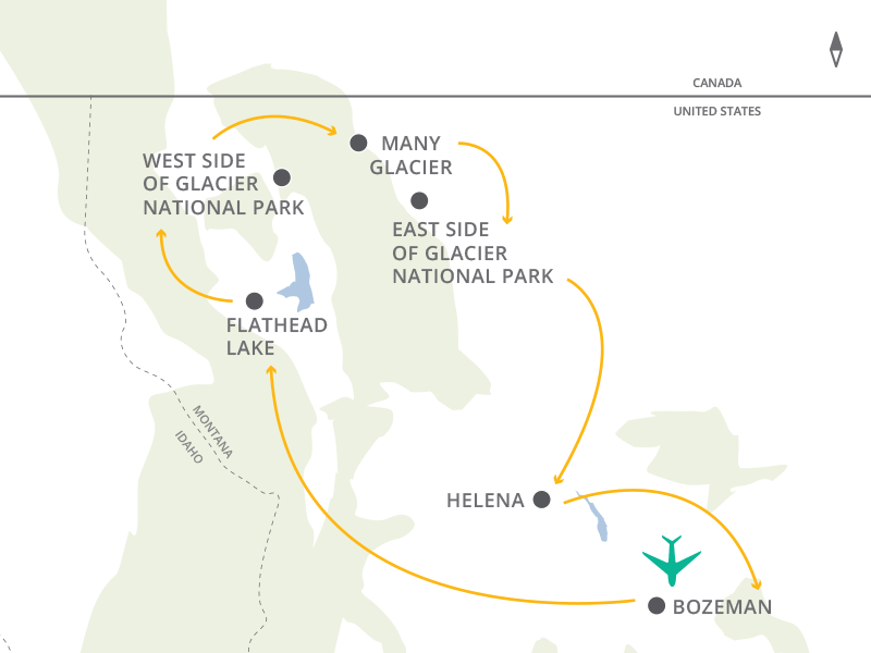 Fly into Bozeman and spend your first night in a hotel in this neat western town before you begin your journey to Glacier National Park. Visit the dinosaur exhibits at the Museum of the Rockies and stop by the American Computer and Robotics Museum.