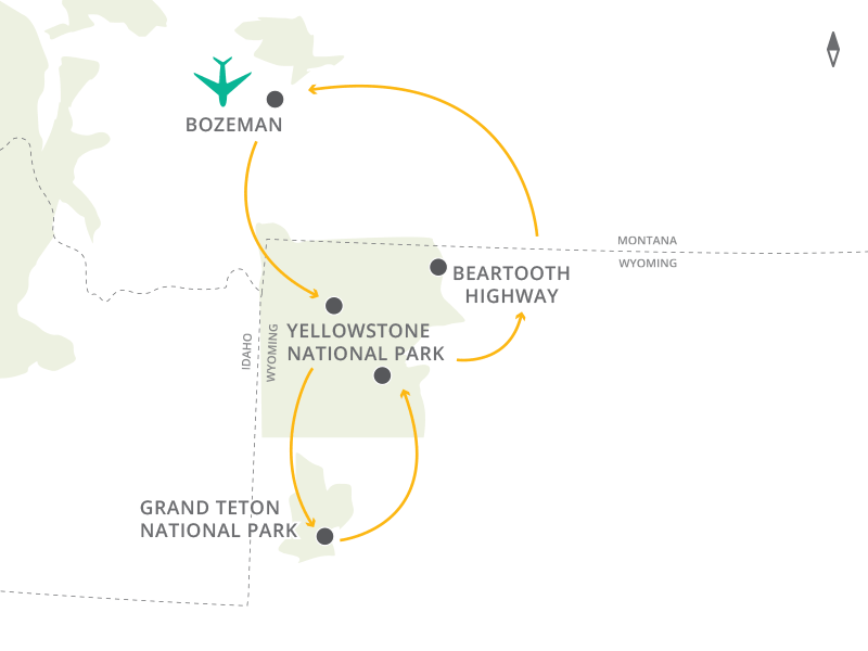 Drive through the Gallatin National Forest from Bozeman, Montana into Yellowstone National Park. Spend a few days in the park watching wildlife, gazing at geysers and touring with your own private guide for a day (included in trip price). Try canoeing, rafting, and hiking in Grand Teton National Park. Visit the eastern side of Yellowstone National Park to see the Grand Canyon of the Yellowstone and choose to add on a horseback ride. Drive the scenic Beartooth Highway and spend the night near the charming western town of Red Lodge, Montana. Finish your trip with a night at the Bozeman Hot Springs Pools before returning your RV and flying home.