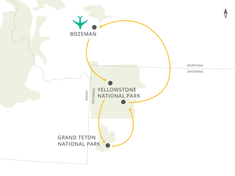 Drive through the Gallatin National Forest from Bozeman, Montana into Yellowstone National Park. Spend a few days in the park watching wildlife, gazing at geysers and touring with your own private guide for a day (included in trip price). Try canoeing, rafting, and hiking in Grand Teton National Park. Visit the eastern side of Yellowstone National Park to see the Grand Canyon of the Yellowstone where you can choose to add on a horseback ride. Finish your trip with a night at the Bozeman Hot Springs Pools before returning your RV and flying home.