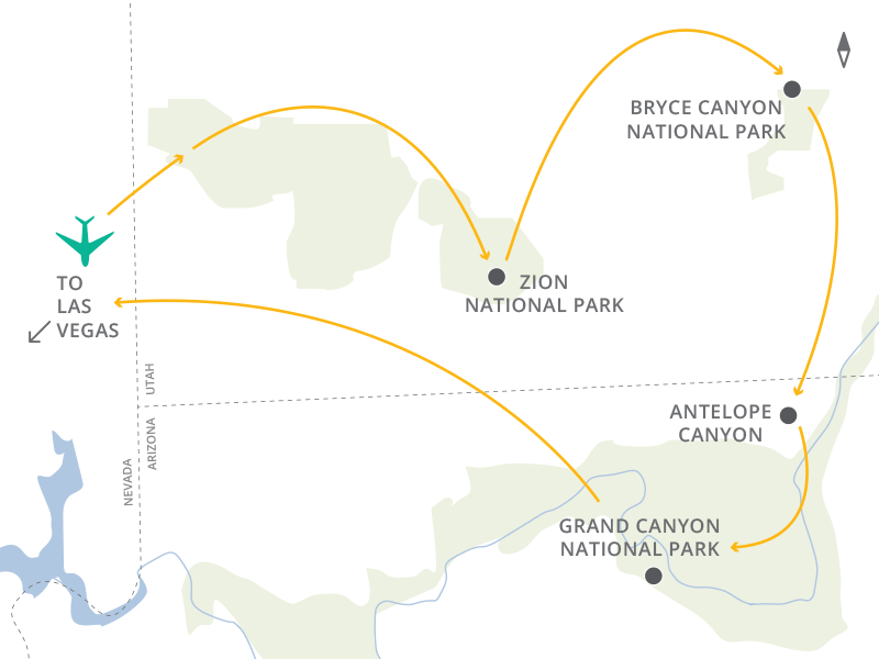 Zion, Bryce & Grand Canyon + Antelope Canyon